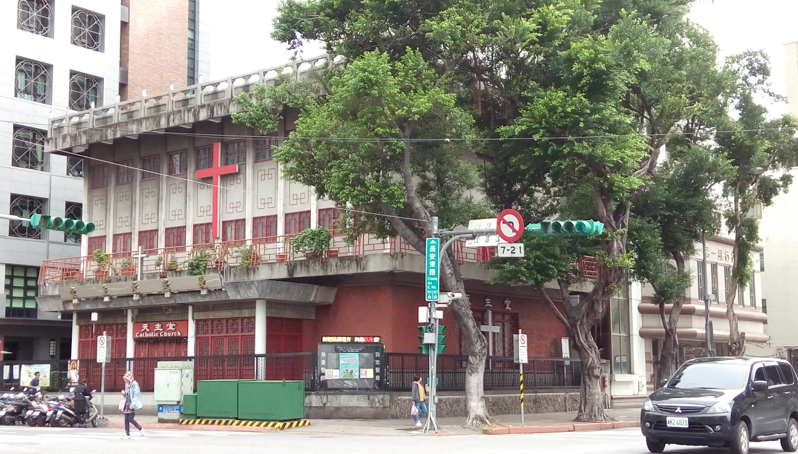 斜對面這棟有著東方風味的宗教建築則是韓國教會。隔著長安東路另一側原有一棟公家宿舍,似乎是電影藍色大門女主角孟克柔(桂綸鎂)的家。
